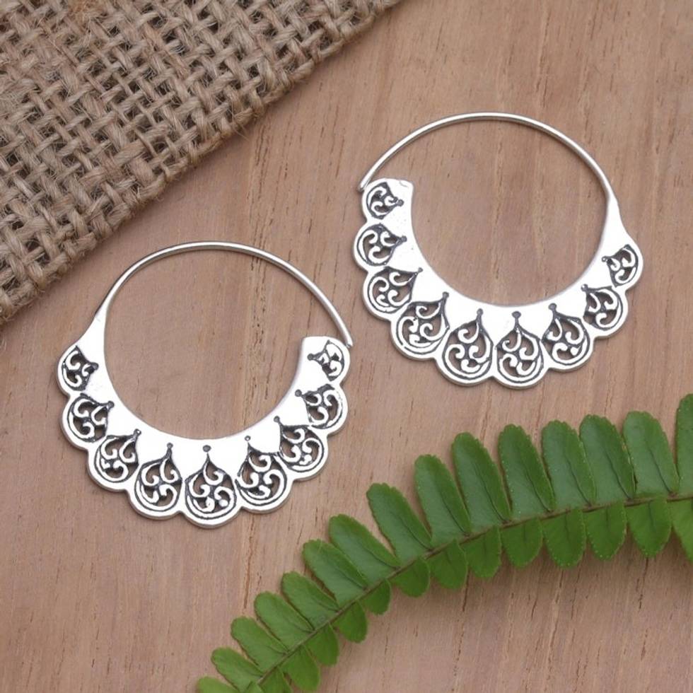 Hand Crafted Sterling Silver Hoop Earrings 'Round Trip' Item ID: 2671746932