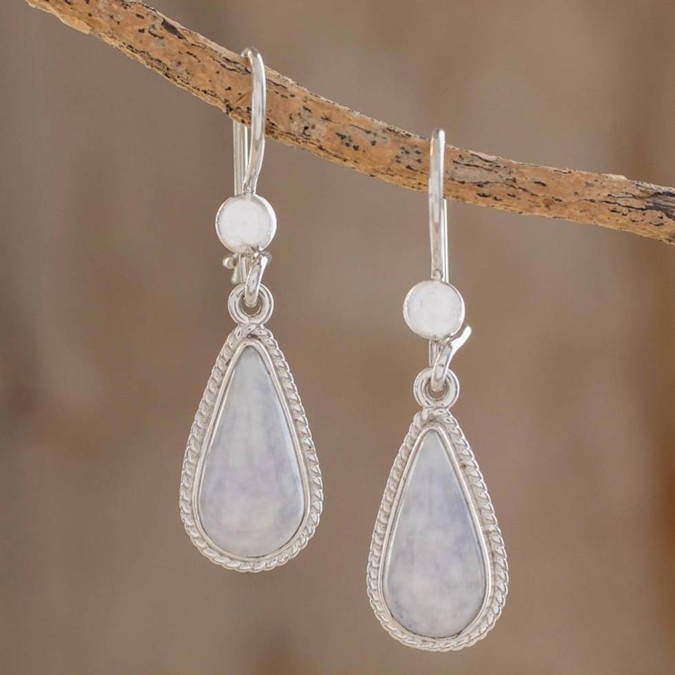 Hand Crafted Sterling Silver Lavender Jade Dangle Earrings 'Lavender Tear' Item ID: 2671777704