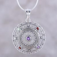 Hand Crafted Sterling Silver Multigem Pendant Necklace 'Gemstone Mandala' Item ID: 2671794562