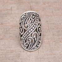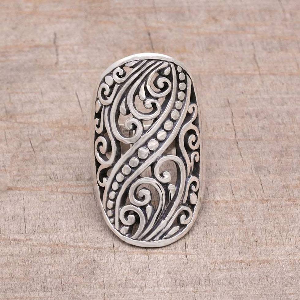 Hand Crafted Sterling Silver Openwork Ring from Indonesia 'Balinese Shield' Item ID: 2676666757