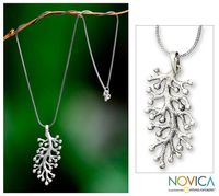 Hand Crafted Sterling Silver Pendant Necklace 'Coral Frost' Item ID: 2671477094