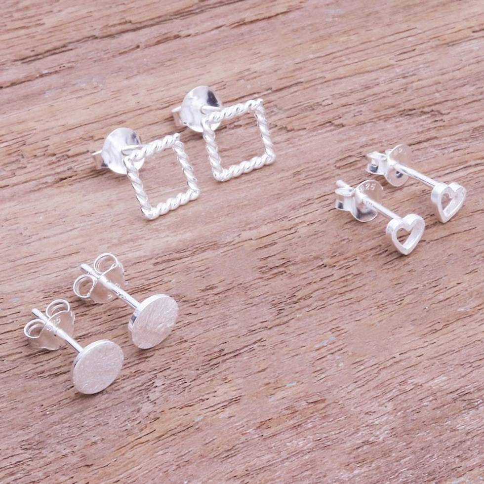 Hand Crafted Sterling Silver Stud Earrings Set of 3 'Together At Last' Item ID: 2671800301