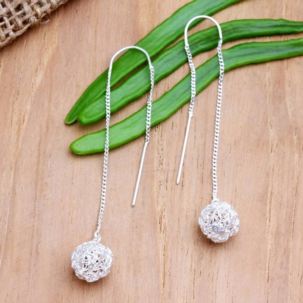 Hand Crafted Sterling Silver Threader Earrings 'Life's a Ball' Item ID: 2671746945