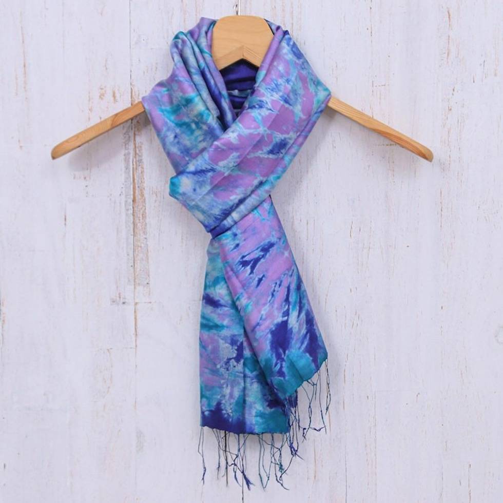 Hand Crafted Tie-Dyed Silk Scarf 'Candy Sea' Item ID: 2669894228