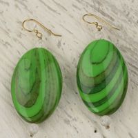 Hand Crafted Upcycled Plastic Dangle Earrings in Green 'Rustic Love in Green' Item ID: 2671803790