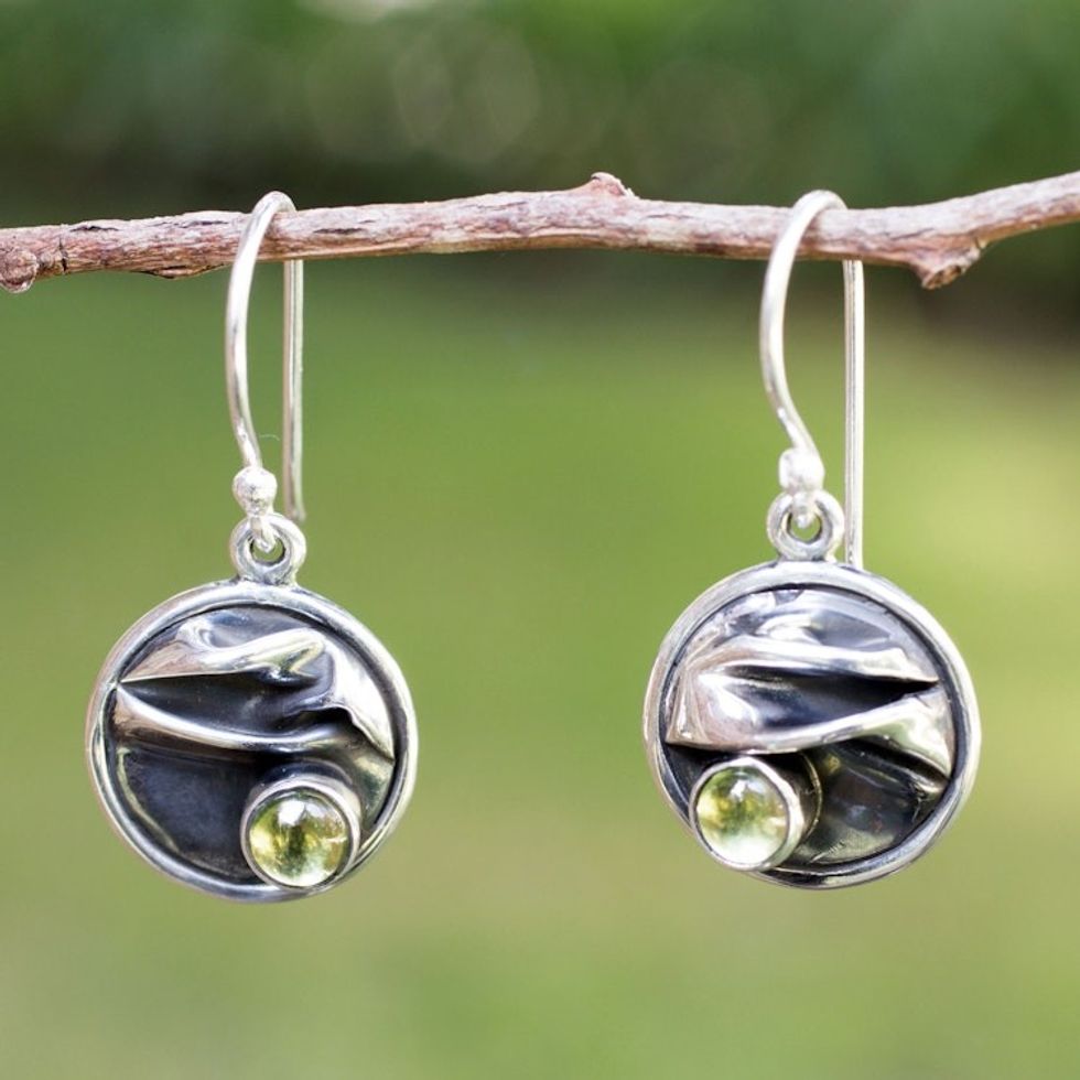 Hand Crafted Women's Fine Silver Peridot Earrings 'Taxco Dawn' Item ID: 2669927011