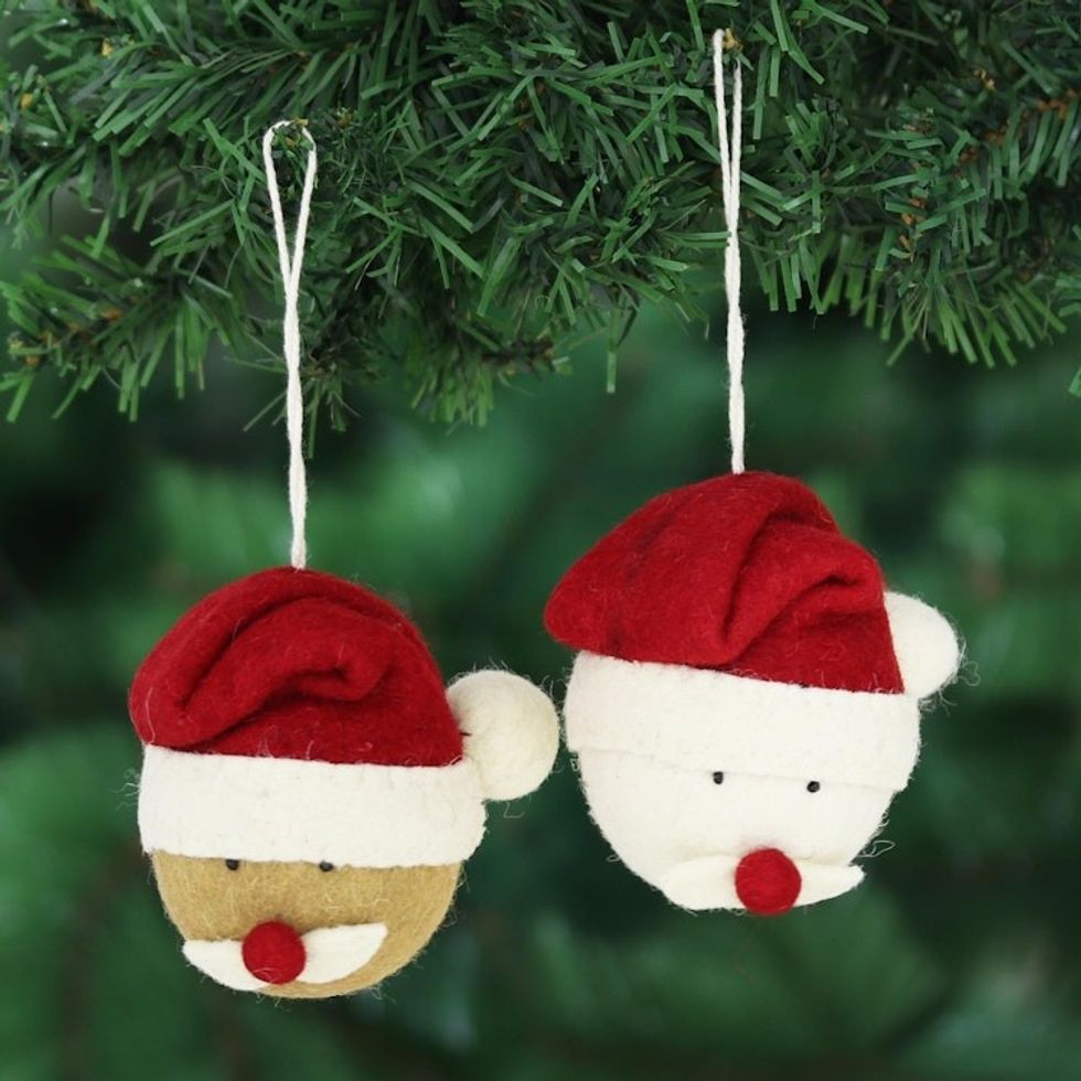Hand Crafted Wool Felt Santa Face Ornaments Pair 'Santa Face' Item ID: 2671789883