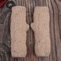 Hand Crocheted 100 Alpaca Fingerless Mitts 'Alabaster Warmth' Item ID: 2669891421