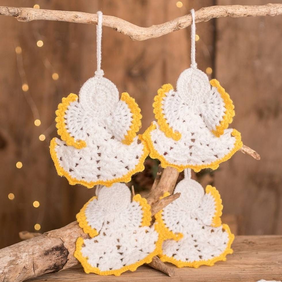 Hand-Crocheted Angel Ornaments in White Set of 4 'Light of Love' Item ID: 2671777150