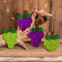 Hand-Crocheted Green and Purple Grape Ornaments Set of 4 'Sweet Grapes' Item ID: 2671777000