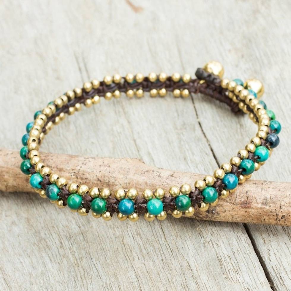 I absolutely love Tiraphan Hasub's bracelets. I have several in my collection, and I just ordered another with the Rose Quartz. These are the perfect gift for a friend that loves nature or bohemian style. The little bells on the clasp make a wonderful tinkling sound when worn.