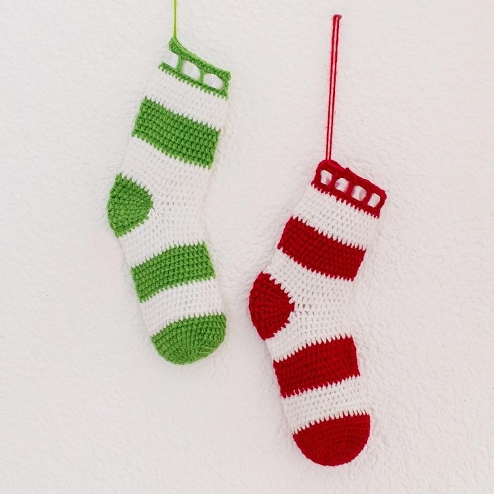 Hand-Crocheted Stocking Ornaments from Guatemala Pair 'Waiting for Presents' Item ID: 2671776935