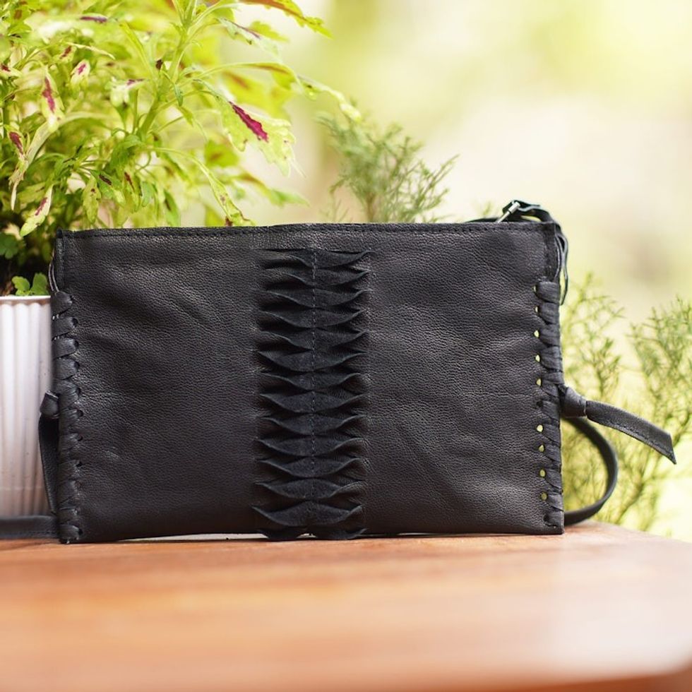 Hand-Cut Leather Sling Bag from Bali 'Dark Center' Item ID: 2671746686