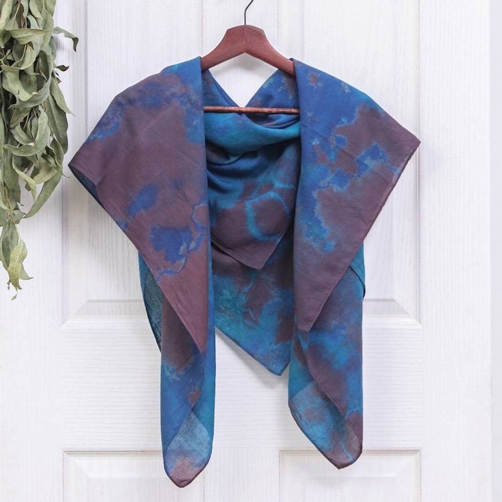 Hand-Dyed Blue and Brown Cotton Wrap Scarf from Thailand 'Lovely Cloud' Item ID: 2671798226