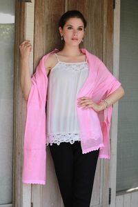 Hand Embroidered Pink Paisley Shawl from Indian Artisan 'Pink Paisley Dreams' Item ID: 2671619051