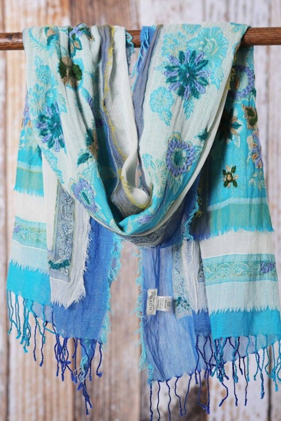 I bought this for my wife as a Christmas gift, and she absolutely adores it. We traveled to India a few months later and she brought it with her, and while we bought a few more scarves and shawls while there this remains her favorite due to the beautiful colors and patterns worked into this piece of art.