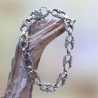 Hand Engraved Sterling Silver Link Bracelet from Bali 'Fern Connection' Item ID: 2671701944