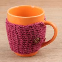 Hand-Knit Buttoned Beverage Cozy 'Cozy Coffee' Item ID: 2669892385