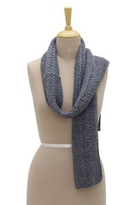 Hand Knit Himalayan Lavender Wool Blend Wrap Scarf 'Himalayan Cascade in Lavender' Item ID: 2671790982