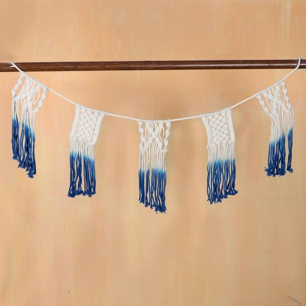 Hand-Knotted Cotton Macrame Bunting 'Starry Twist' Item ID: 2671789231