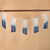 "Festive flags created by Hardeep make the perfect bohemian accessory for your home. From his workshop in India, the artisan hand knots five fringed flags from 100% cotton using macrame techniques. The colorful flags hang from a thick cotton cord with loops on the end for hanging."