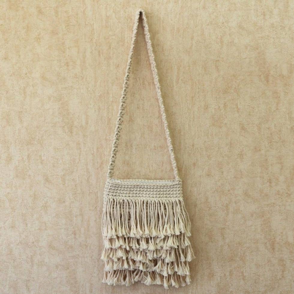 Hand-Knotted Cotton Sling with Fringes from Bali 'Malang Majesty' Item ID: 2669892009