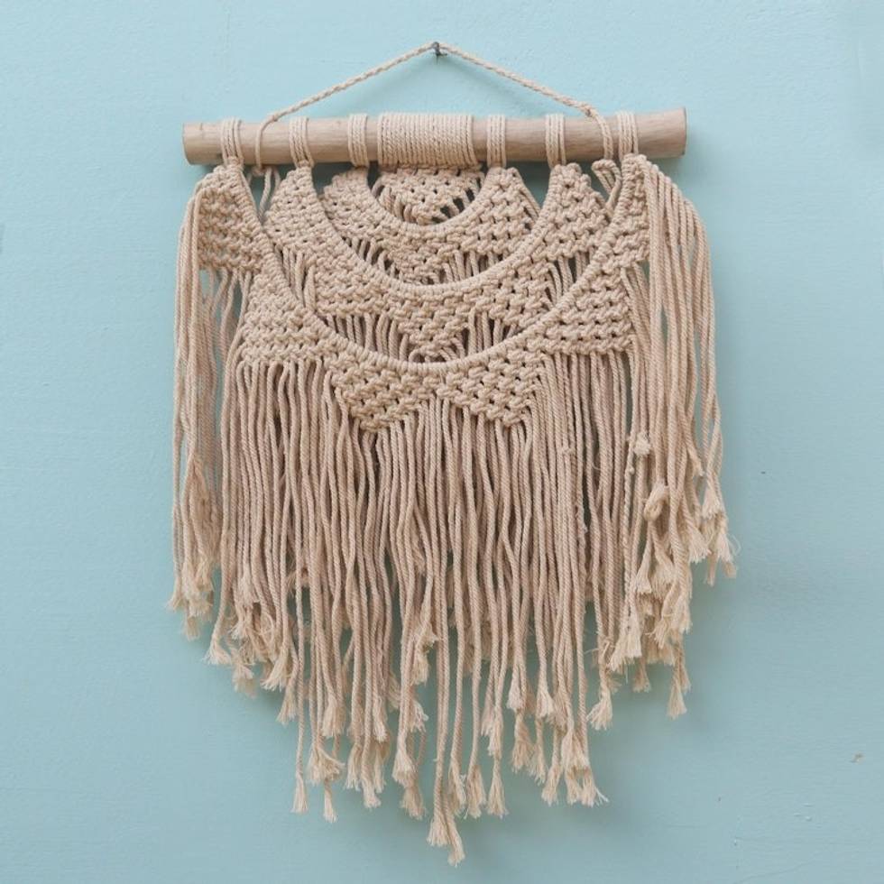 Hand-Knotted Cotton Wall Hanging with Fringe from Bali 'Tegalalang Sunrise' Item ID: 2671745005