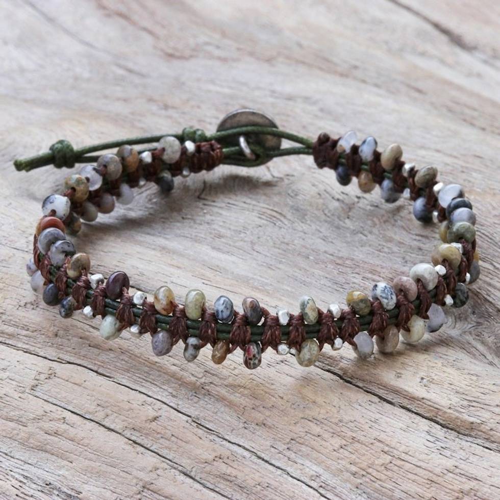 Hand Knotted Macrame Agate and Leather Cord Bracelet 'Spiritual Side in Brown' Item ID: 2671800015