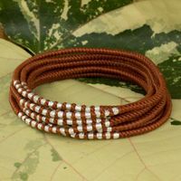 Hand Knotted Wrap Bracelet with Silver Accents 'Karen Honey Chic' Item ID: 2671802749