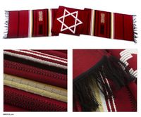 Hand Loomed Cotton Table Runner 'Star of David on Red' Item ID: 2671780302