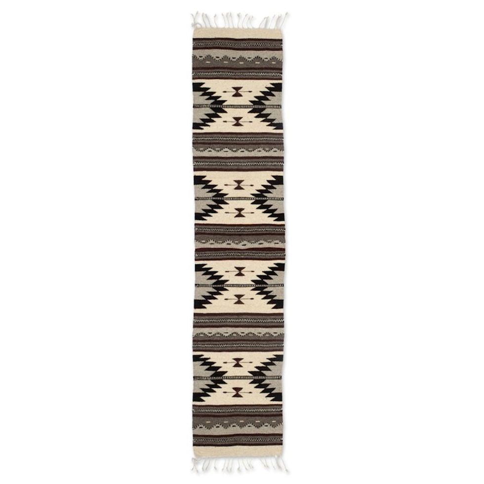 Hand-Loomed Geometric Zapotec Wool Table Runner in Wheat 'Wheat Thunders' Item ID: 2671798777