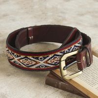 Hand Loomed Wool Accent Leather Belt 'Inca Ancestors' Item ID: 2669907584
