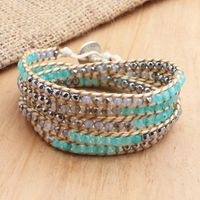 Hand Made Amazonite and Hematite Beaded Wrap Bracelet 'Sea Ice' Item ID: 2671745243