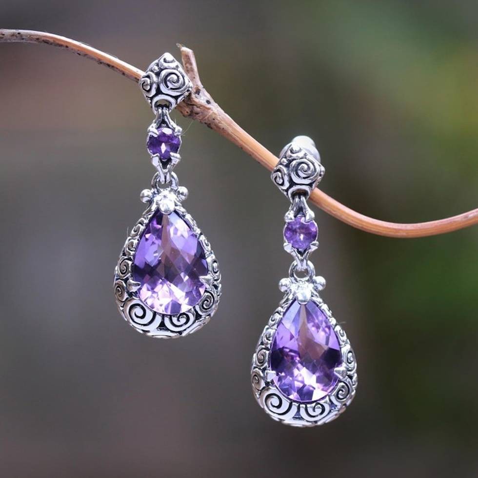 Hand Made Amethyst Dangle Earrings from Indonesia 'Glistening Buddha's Curls' Item ID: 2671701607