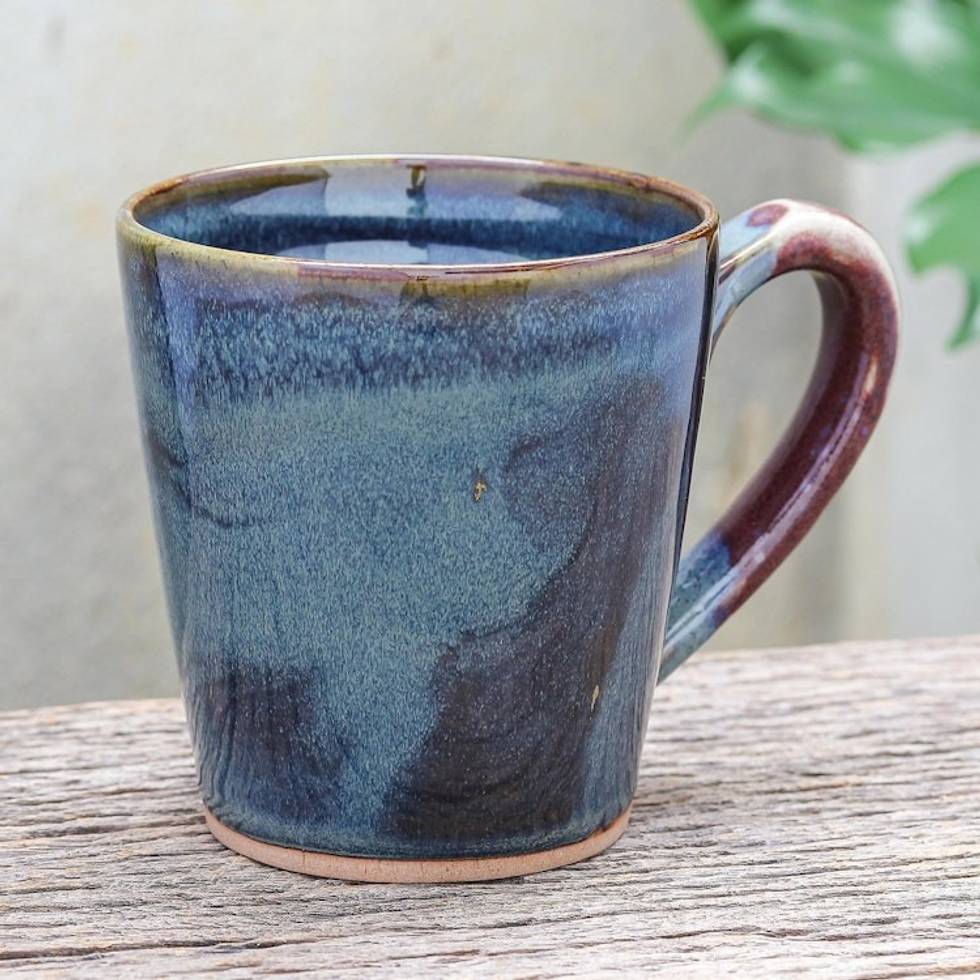 Hand Made Blue and Red Ceramic Mug 'Shoreline' Item ID: 2671640986