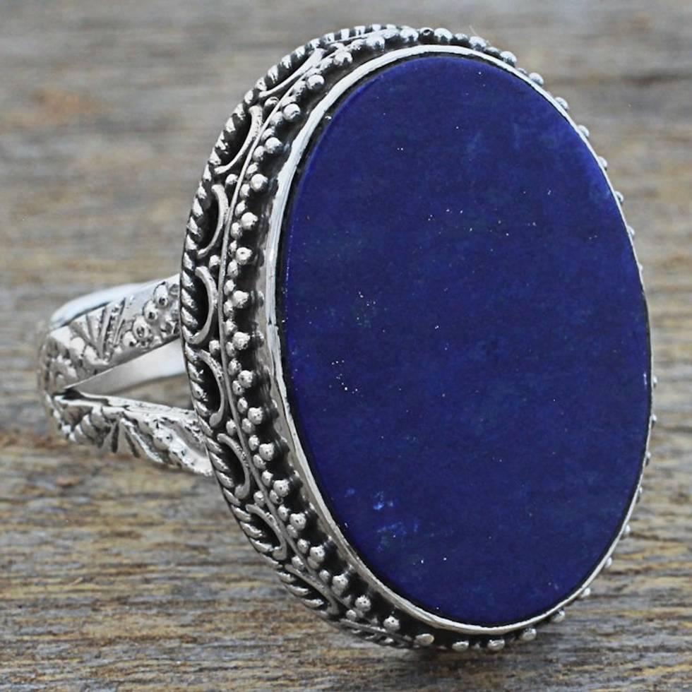 Hand Made Blue Oval Lapis Lazuli Cocktail Ring India 'Pool of Memories' Item ID: 2669943968