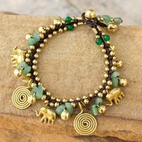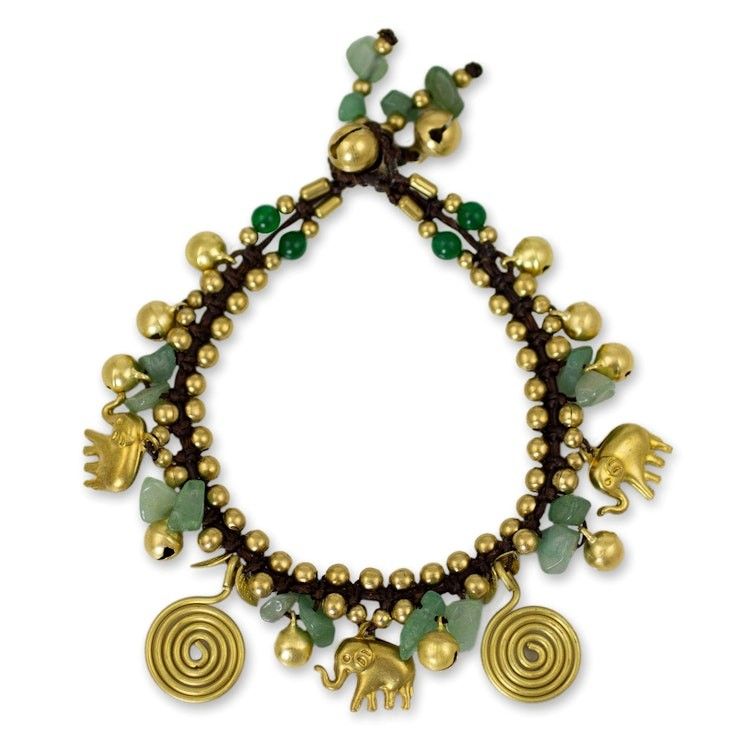 Hand Made Brass and Aventurine Elephant Charm Bracelet 'Splendor of Siam' Item ID: 2671803177