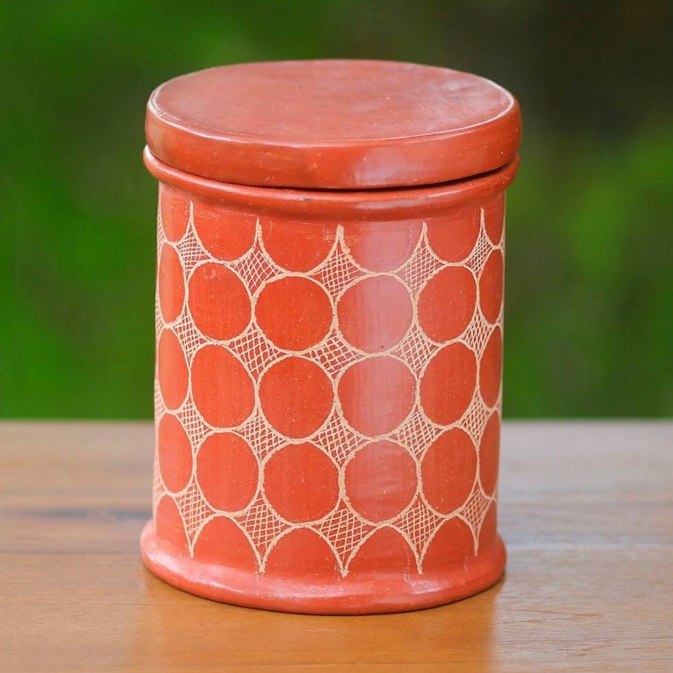 Hand Made Brown Terracotta Jar and Lid 'Sun Echo' Item ID: 2671702119