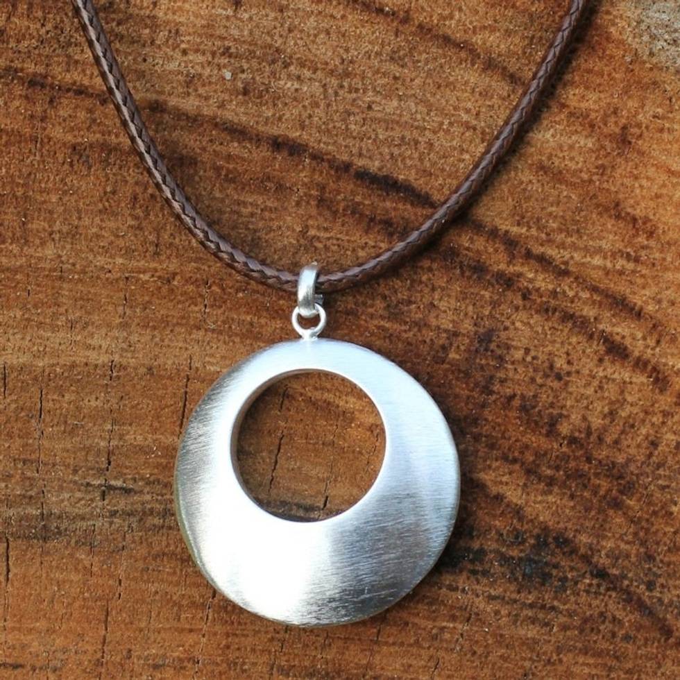 Hand Made Brushed Silver Pendant Necklace 'Satin Moon' Item ID: 2671802954