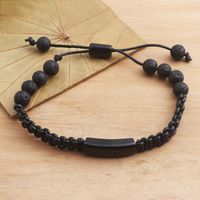 Hand Made Buffalo Horn and Lava Stone Beaded Bracelet 'Midnight Protection' Item ID: 2671744726