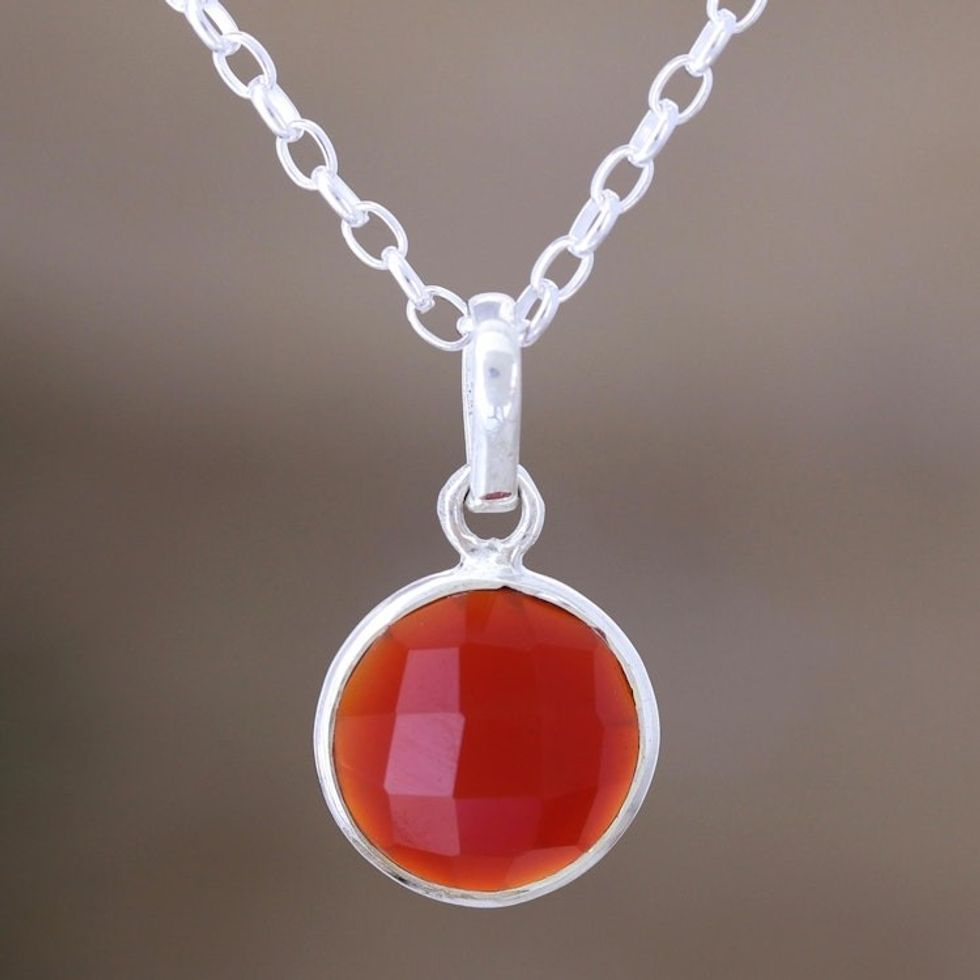Hand Made Carnelian and Sterling Silver Pendant Necklace 'Swing Low in Orange' Item ID: 2671789249
