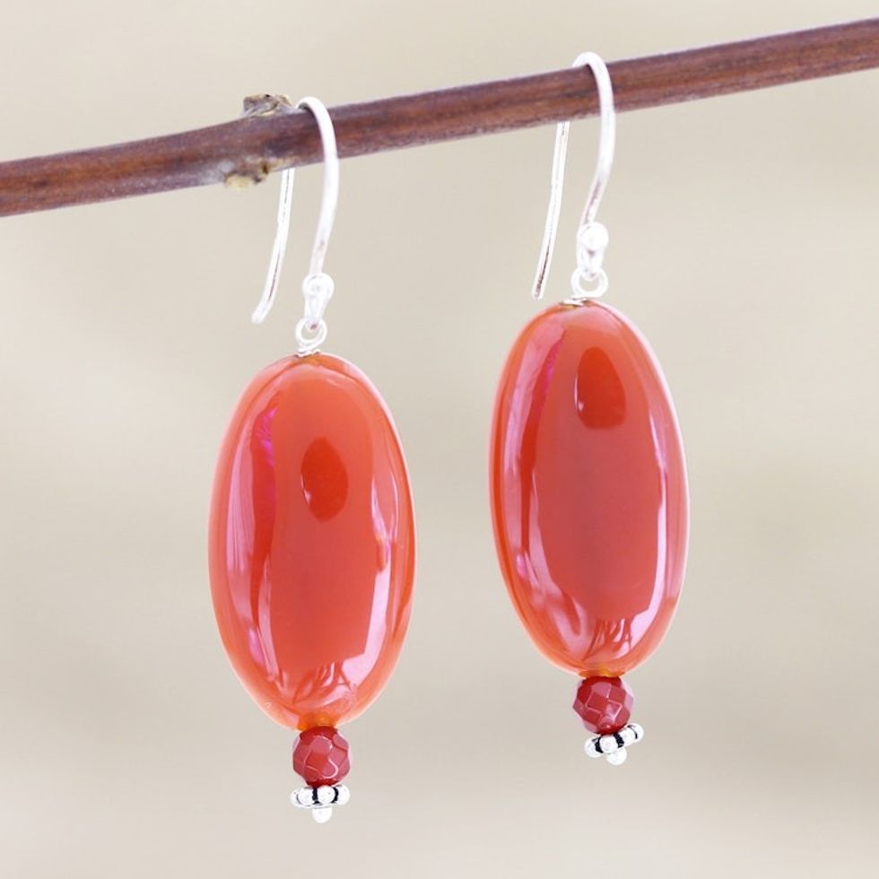 Hand Made Carnelian Dangle Earrings from India 'Trial by Fire' Item ID: 2671790002