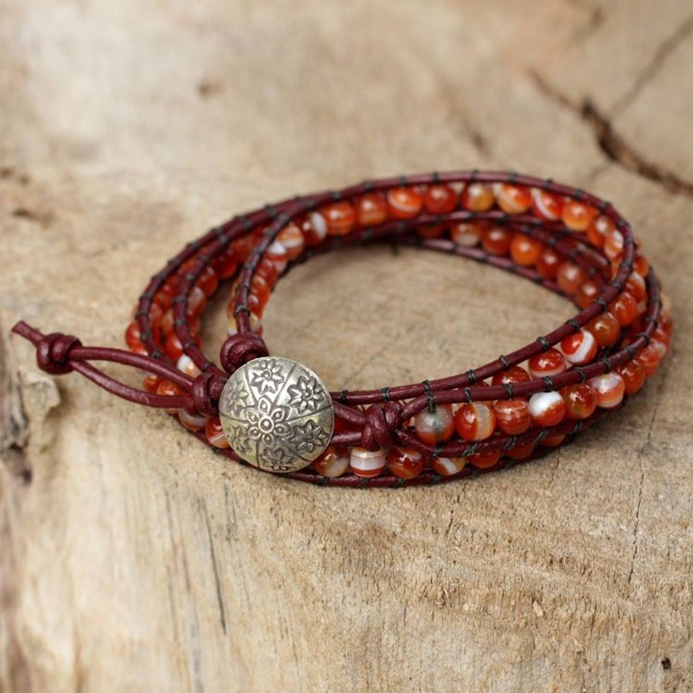 Hand Made Carnelian Wrap Bracelet 'Forest Flower' Item ID: 2669926689