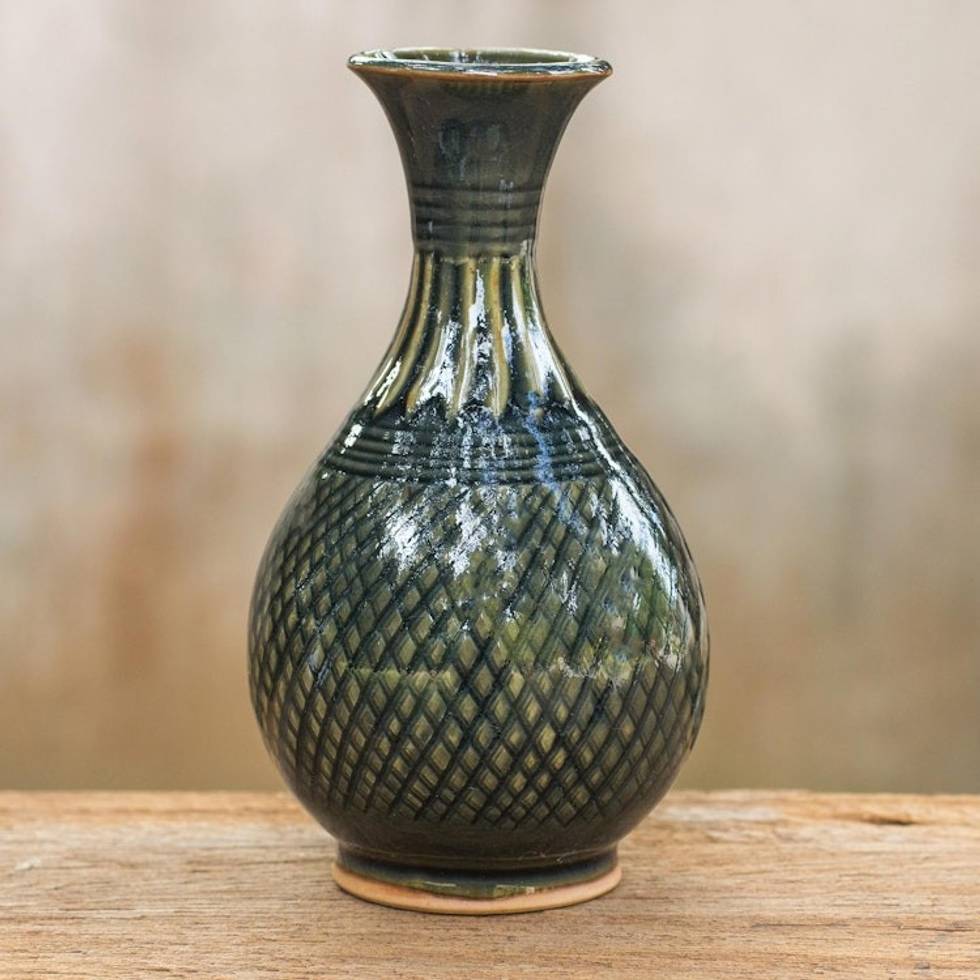 Hand Made Celadon Ceramic Vase from Thailand 'Glamorous Celebration' Item ID: 2669930306