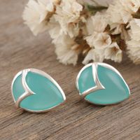 Hand Made Chalcedony and Sterling Silver Button Earrings 'Water Drop in Green' Item ID: 2671788539