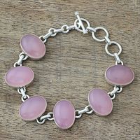 Hand Made Chalcedony Sterling Silver Link Bracelet India 'Pink Adoration' Item ID: 2671793918