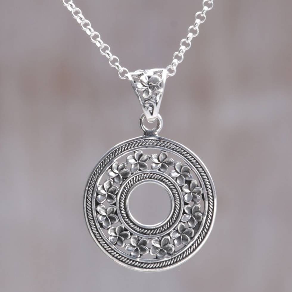 Hand Made Circle Sterling Silver Pendant Necklace Indonesia 'Jepun Coin' Item ID: 2671481852