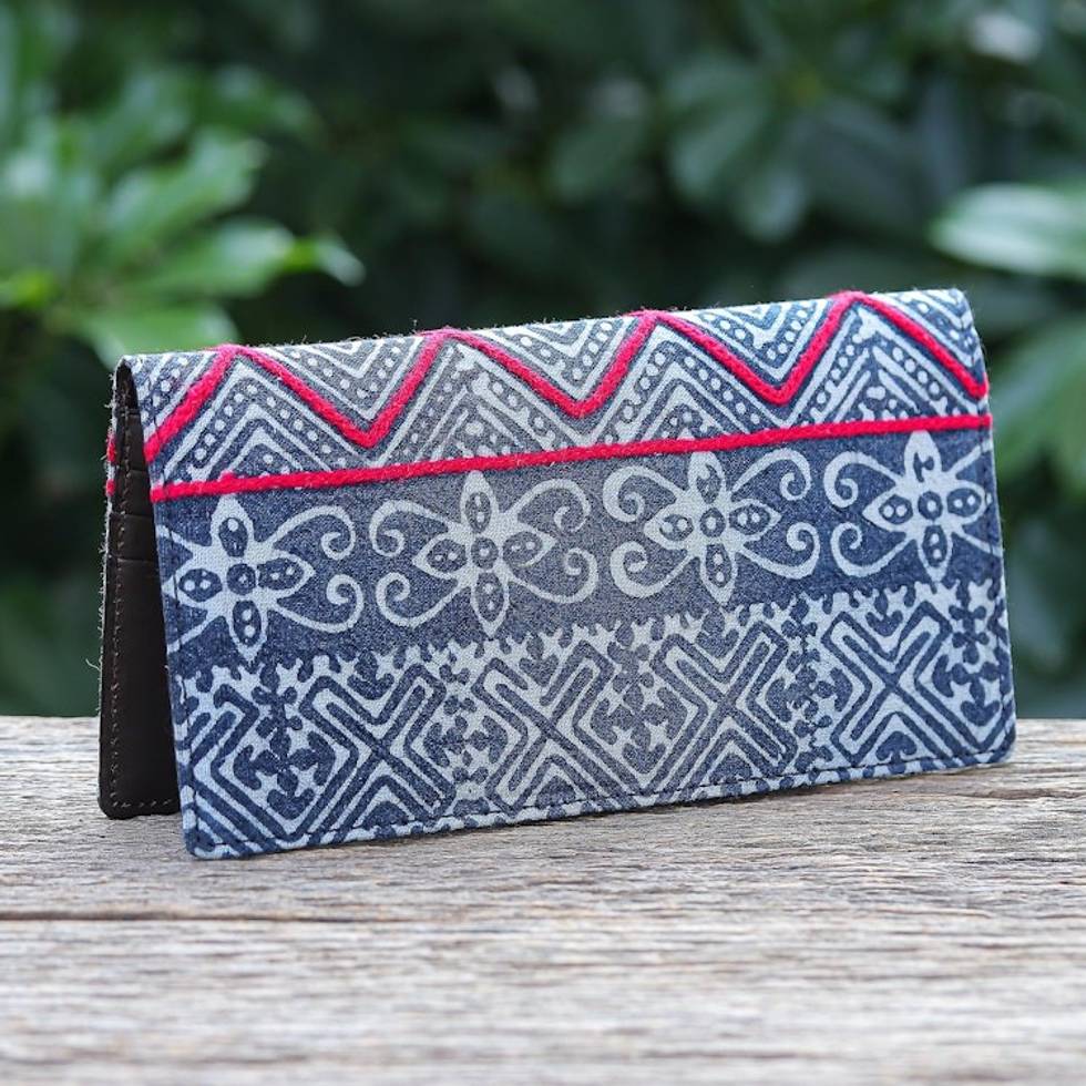 Hand Made Cotton and Leather Batik Long Wallet 'Red Thread' Item ID: 2669892481