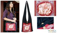 Hand Made Cotton Shoulder Bag 'Red Elephant Luck' Item ID: 2669926425