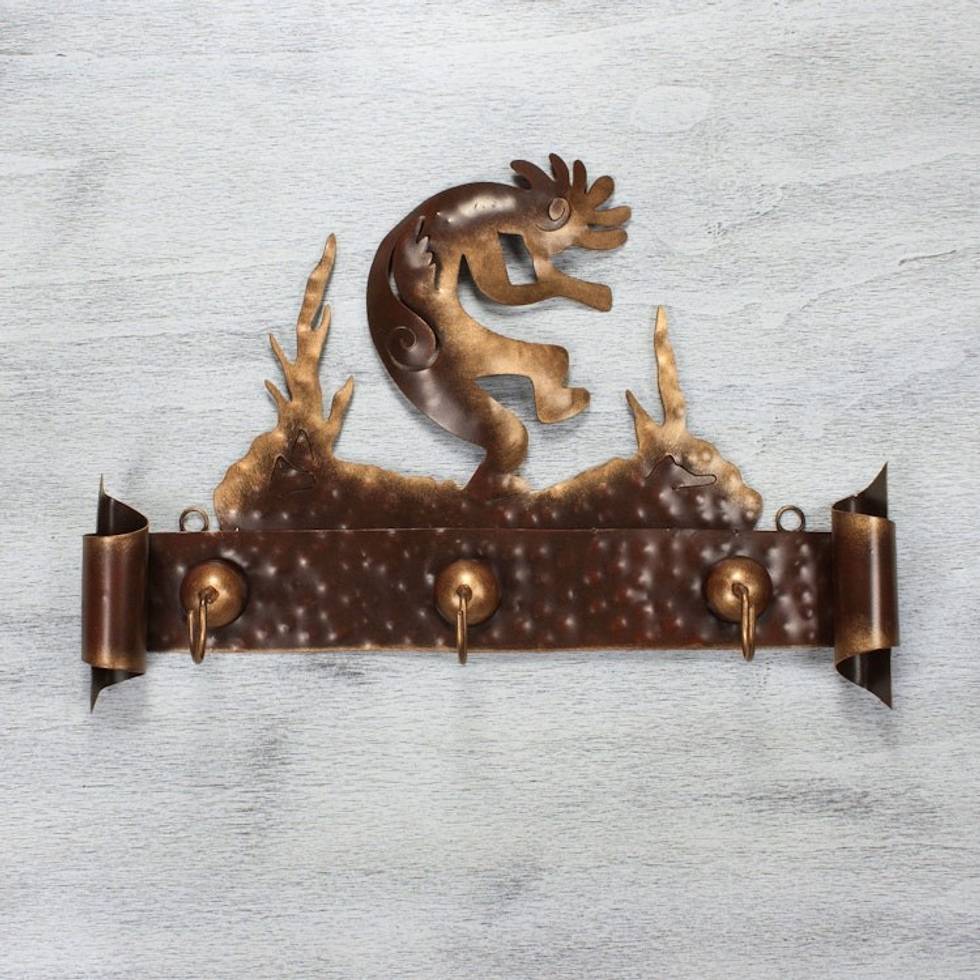 Hand Made Cultural Steel Coat and Key Holder 'Kokopelli Serenade' Item ID: 2669897352